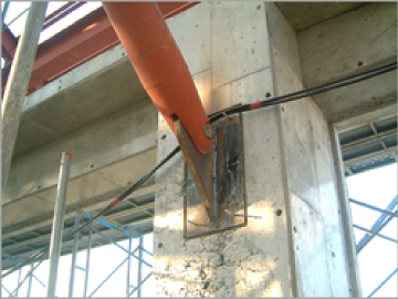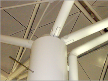 構造体の応力の伝達をスムーズにするため、曲線を使ったデザインに応えるため、鋳鋼金物は幅広く使用されています。鋳鋼金物は他の鉄骨主材と溶接して使用する場合が多いため、材質は主に溶接性を考慮したものが使用されます。また、耐火性、耐候性を考慮した材質も使用されはじめています。