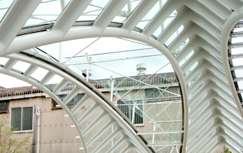 これまでGブレースは一般構造用圧延鋼材(SS材)と建築構造用圧延丸鋼(SNR材)だけでしたが、アトリウム、吹き抜け部などの箇所で使用の場合、ステンレスブレースが最適です。